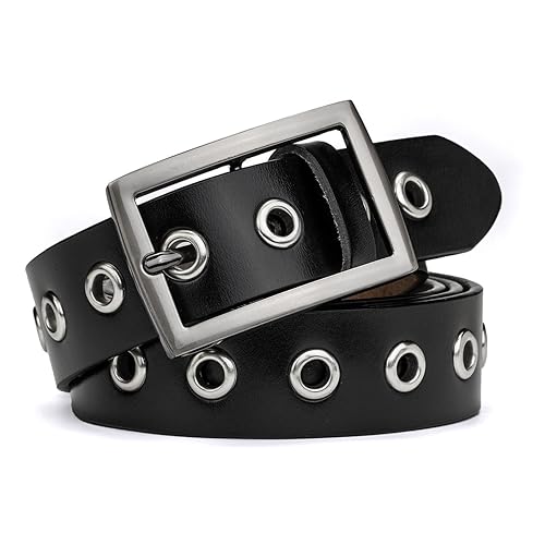 Jeffenly Women Punk Leather Belt Single Grommet Holes Buckle