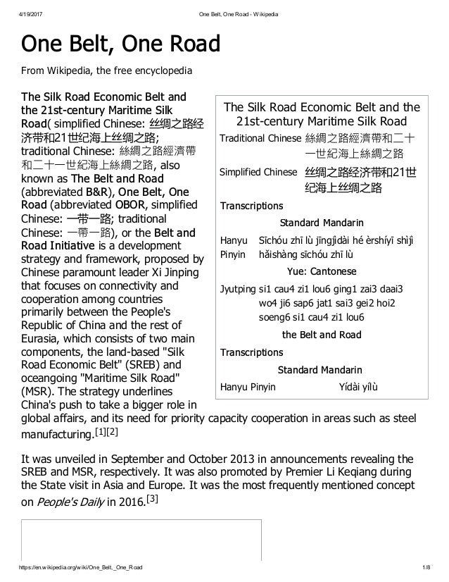 One Belt One Road In China 19 November 2015