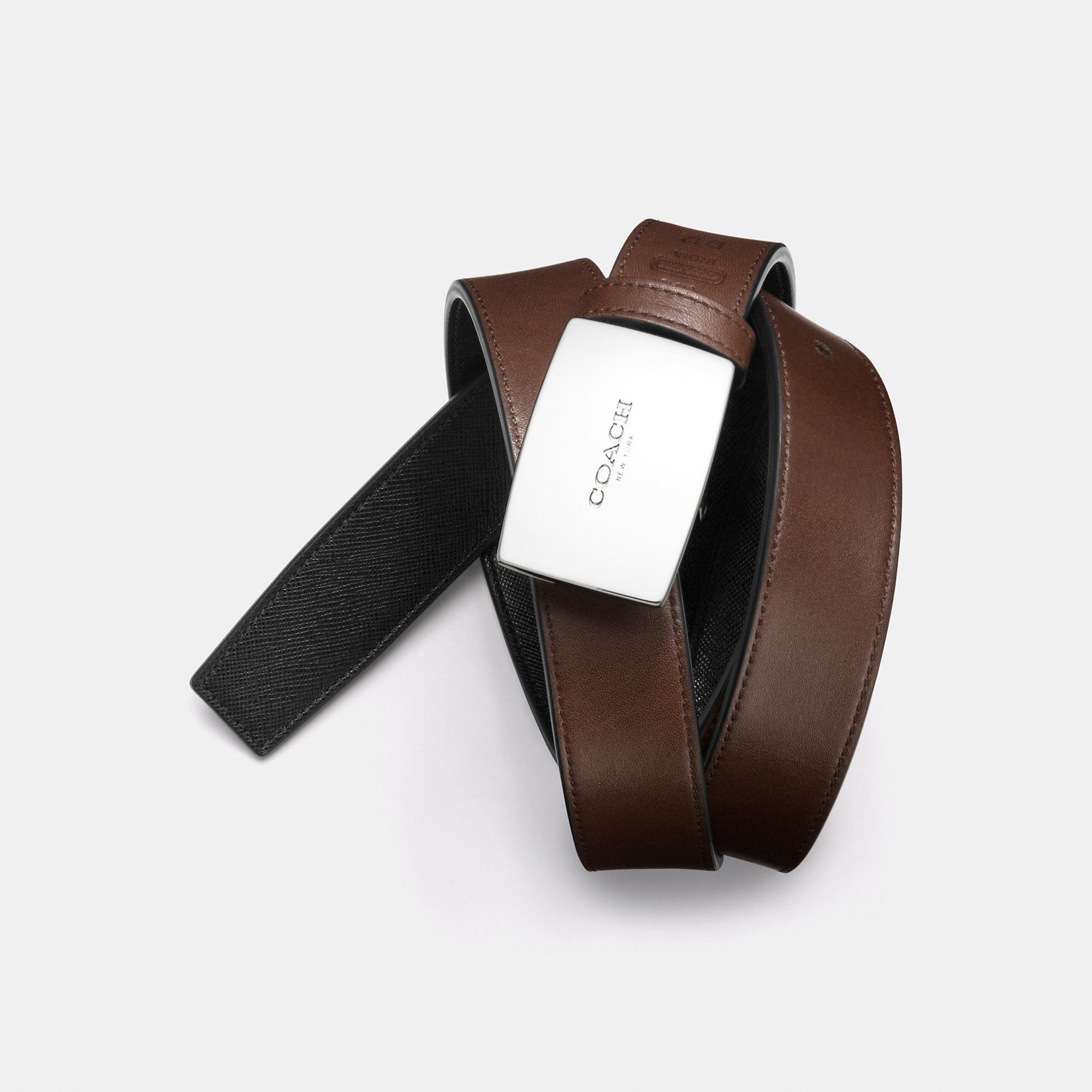 Coach Boxed Cut To Size Reversible Belt In Black Dark Brown Brown